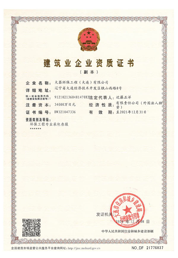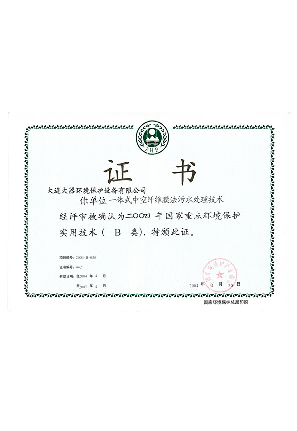 企業(yè)轉(zhuǎn)型,“大連大器環(huán)保設(shè)備有限公司”更名為“大器環(huán)保工程(大連)有限公司”。FRP凈化槽及相關(guān)零部件生產(chǎn)停止,開始生產(chǎn)銷售環(huán)保裝置及環(huán)保工程的設(shè)計施工與日常維護(hù)管理。掀起了中國的污水處理工程新開端。